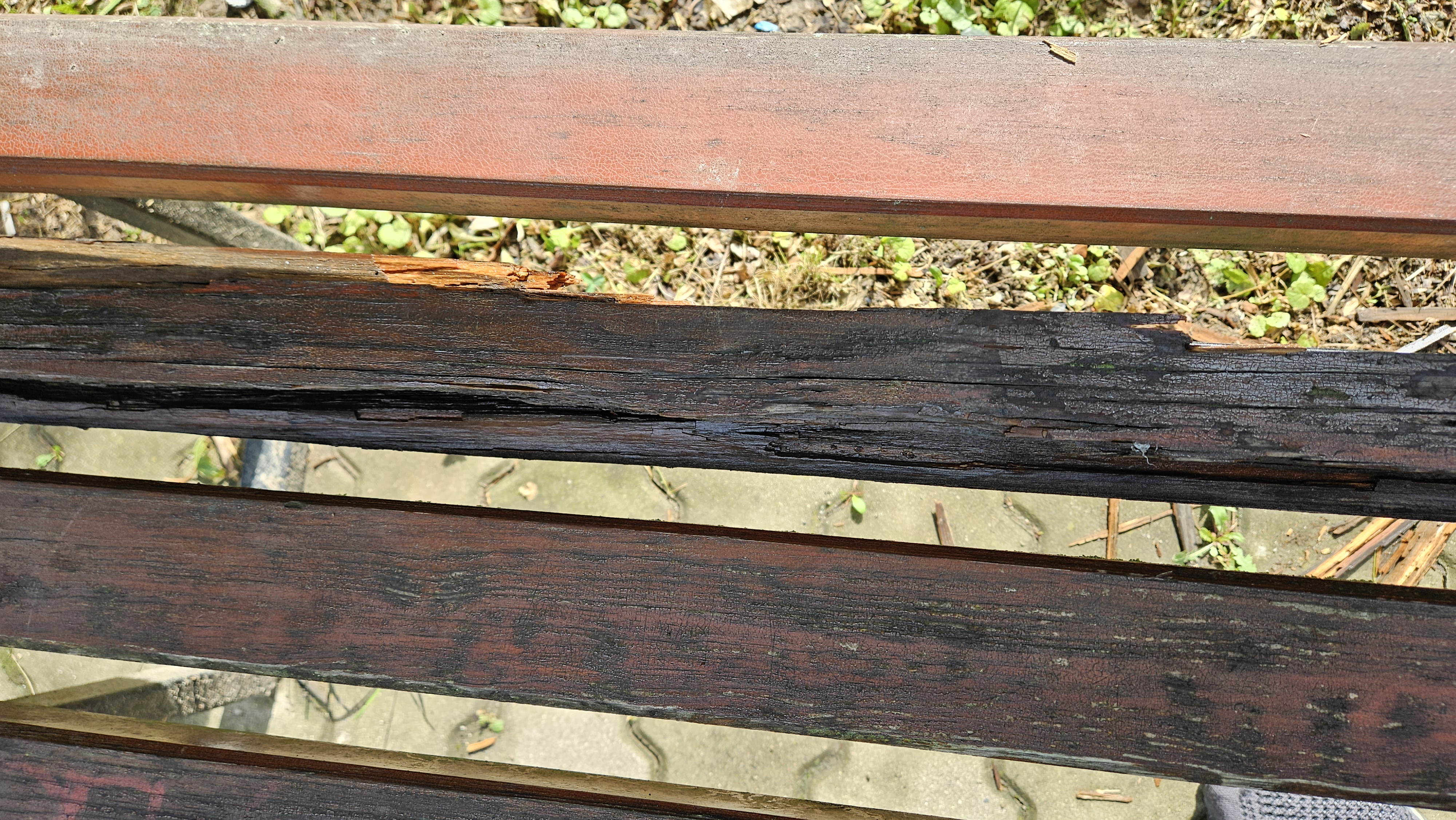 Proszę o wymianę desek na dwóch ławkach, które znajdują się przy ul. Stromej przy placu zabaw, a także kopalni Złota Aurelia. Deski na ławkach są spróchniałe i wystają z nich ostre drzazgi. Miejsce to jest często odwiedzane przez turystów.